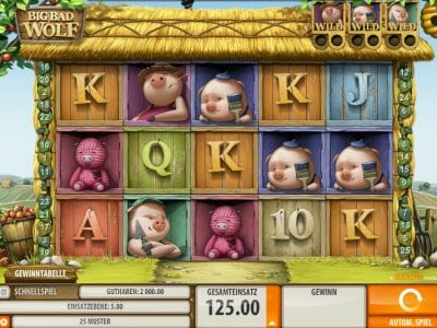Der Spielautomat Big Bad Wolf nimmt die Geschichte von den drei kleinen Schweinchen und dem großen bösen Wolf auf. Ein Kindermärchen, welches weltweit bekannt ist, wird hier verarbeitet. Der Wolf möchte die Schweine verspeisen und pustet deren Häuser um. Beim Stroh- und Holzhaus ist dies kein Problem und beim letzten Schweinchen geht ihm die Puste aus. Hier besteht das Haus schließlich aus Mauerwerk. Die liebevolle Umsetzung in diesem Automatenspiel und die Tatsache, dass hohe Gewinne möglich sind, machen Big Bad Wolf sehr interessant.