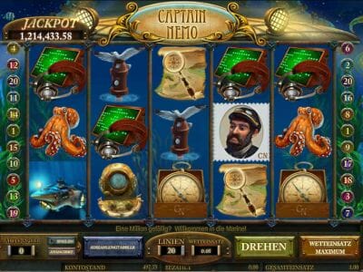 Captain Nemo ist ein Spielautomat, welcher das Meer zum Thema hat. Dennoch handelt es sich nicht um einen Fisch-Slot, was ein weltbekannter Trickfilm nahelegen könnte. Vielmehr steht der Kapitän im Vordergrund der Geschichte. Dementsprechend spannend ist der Hintergrund gestaltet. Zu sehen ist einerseits in Taucher und andererseits eine riesige Krake. Ein gesunkenes Schiff macht das Meeresambiente perfekt. Die Walzen sind durchsichtig gestaltet und geben einen guten Blick auf die Kulisse frei.