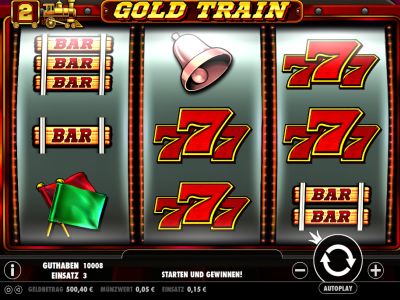 Maximal darf bei Gold Train eine Summe von 15,00 Euro je Spin eingesetzt werden. Das wertigste Symbol, nach dem Zug selber, ist übrigens die rote Super Sieben. Darauf folgend ist die Mütze des Schaffners zu nennen. Mit den Flaggen, der Glocke und den Bar-Symbolen schließt sich der Kreis der herkömmlichen Symbolik bereits.