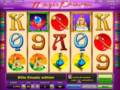 Kennst du Novoline Spiele bereits, dann wird dir auch das Spielen von Magic Princess leicht fallen. Hast du deinen Einsatz und die Anzahl der Gewinnreihen erst einmal festgelegt, kannst du dich gleich in die Märchenwelt begeben. Die Kristallkugel bringt dir sogar 15 Gratisdrehungen ein, sobald sie wenigstens drei Mal zu sehen ist. Die Prinzessin darf natürlich auch dazu beitragen, dass du möglichst einfach an die Gewinne kommst, die sich hinter all den grafisch beeindruckenden Symbolen verbergen. Dieser Joker reicht bereits in einfacher Ausführung aus und kann fehlende Symbole – abgesehen von der magischen Kristallkugel – ganz einfach bei Magic Princess ersetzen.